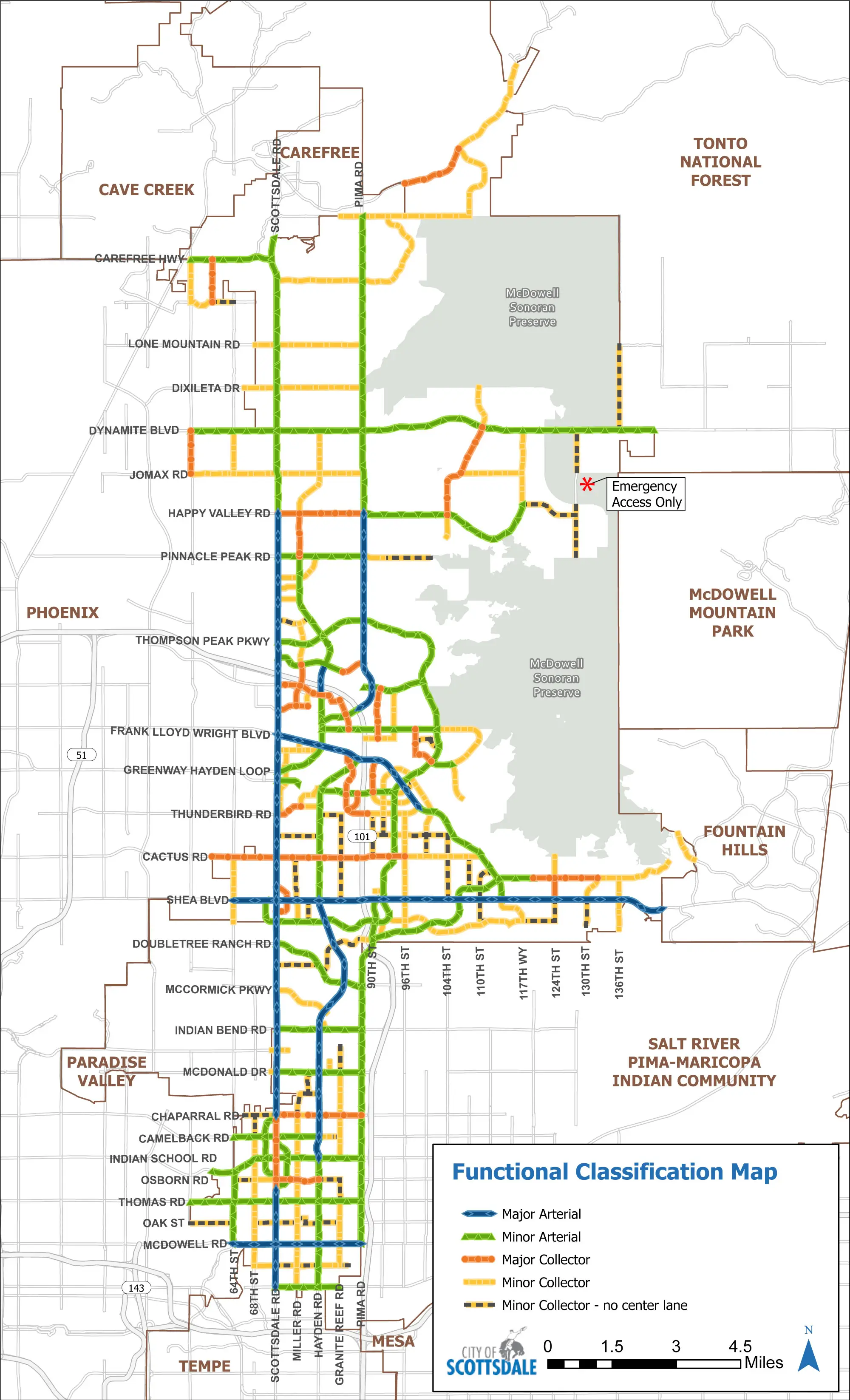 | McDowell Mountain Road | 105th St. | Bell Road | Minor Arterial | Minor Collector |